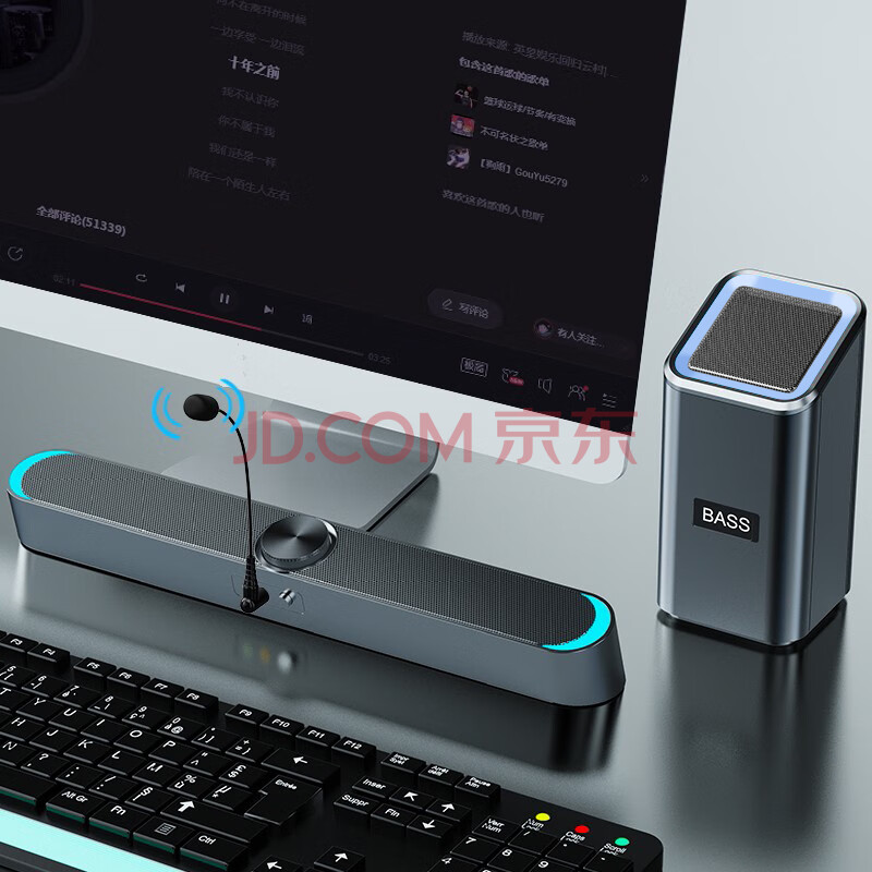 商品相册:赛达 SADA台式机电脑音响带麦克风一体家用笔记本迷你小音箱长条多媒体超重低音炮有线 D-238第