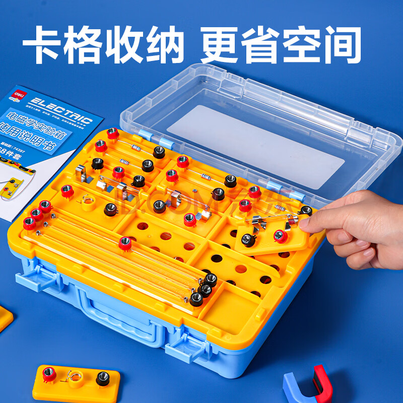 商品相册:得力(deli)电磁学实验箱入门款 初中物理实验全套电磁学备考 电学实验箱学生文具生日开学礼物教材同步68件第1张/共4