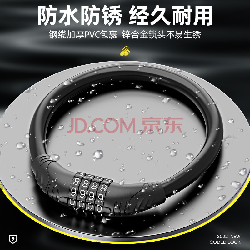 商品相册:Move iron自行车锁便携防盗四位密码头盔锁山地电动摩托车钢丝钢缆锁第