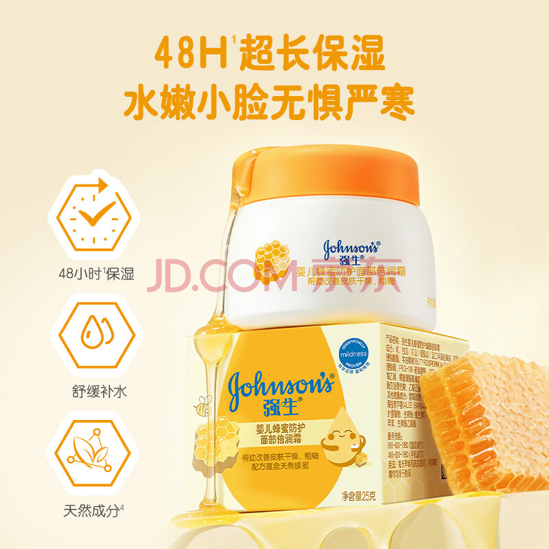 商品相册:强生(Johnson)婴儿蜂蜜面霜25g 婴幼儿宝宝儿童滋润保湿秋冬补水防皴旅行装第