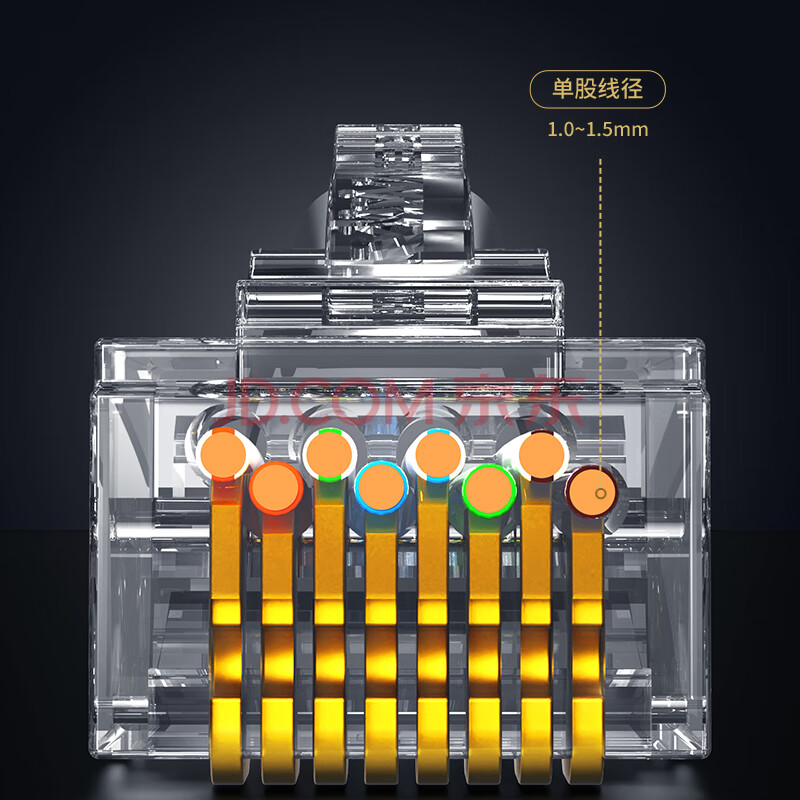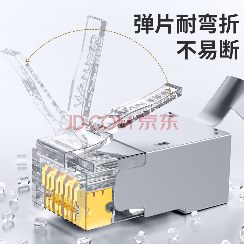 商品相册:万级七类屏蔽水晶头Cat7类万兆纯铜50U加强镀金RJ45工程级网络网线接头保护套 6个装WJ-15311第