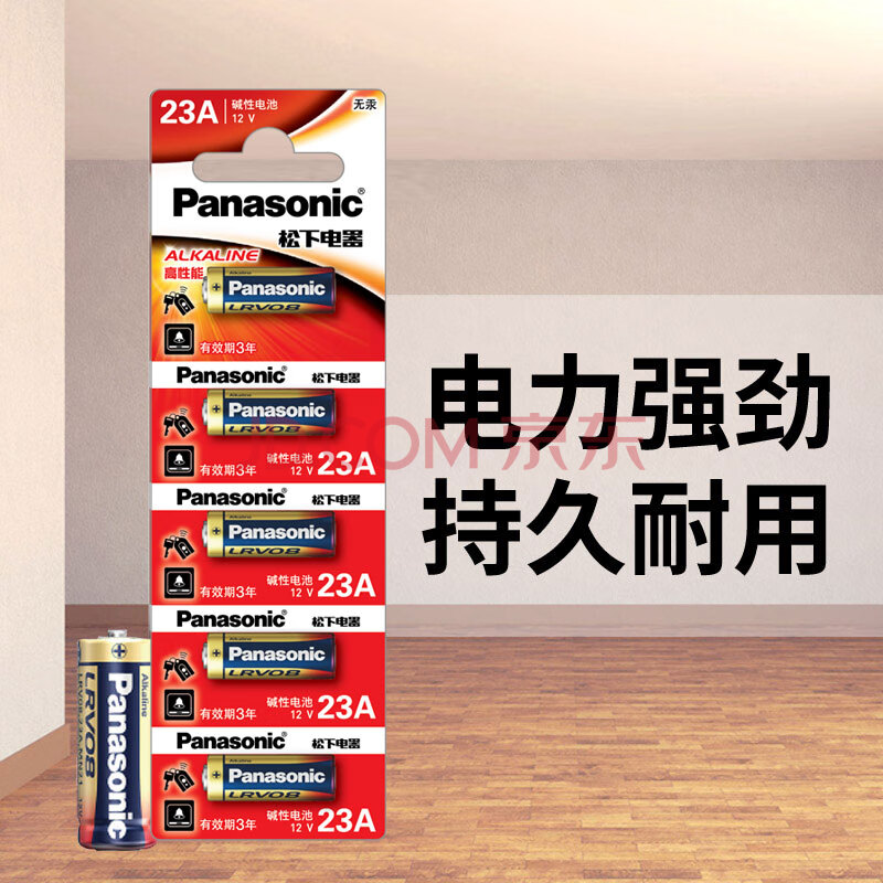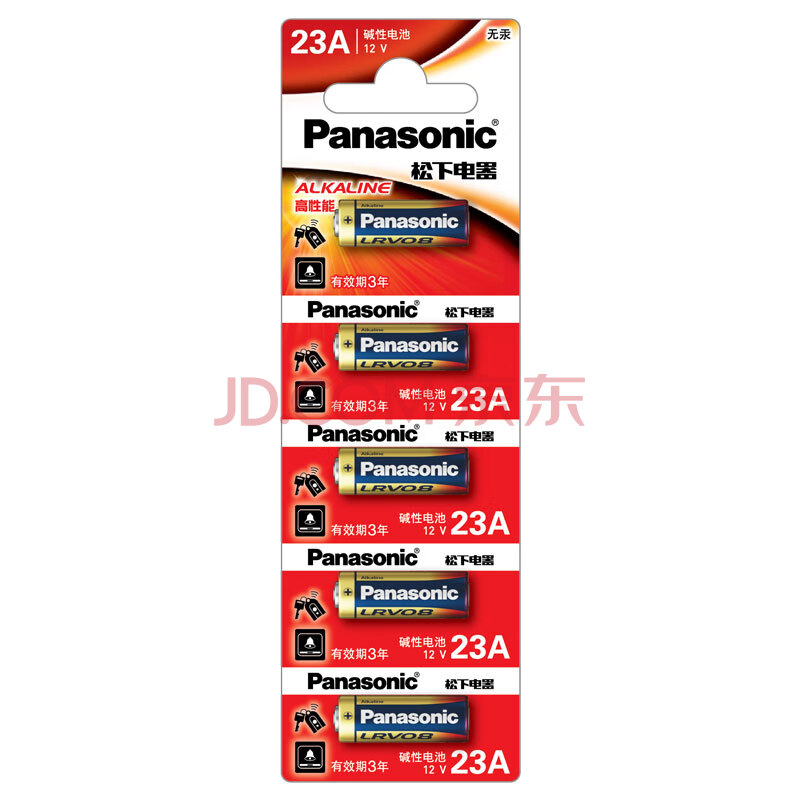 商品相册:松下(Panasonic)23A12V电池5粒卡装碱性适用于门铃/卷帘门遥控器/车辆防盗器/玩具/钥匙遥控等LRV08L第