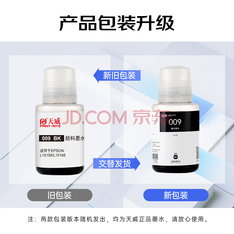 商品相册:天威009墨水适用爱普生L15158 L6558 L15168 M15146 L6468 M15147 6578 15188 6498 M15188打印机颜料 黑色大容量第