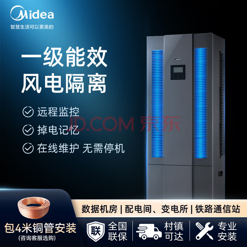 商品相册:美的3匹精密空调机房基站专用柜机恒温单冷380V变配电站24H运转MAV008WT1N20-Mi包4米铜管安装-京配第