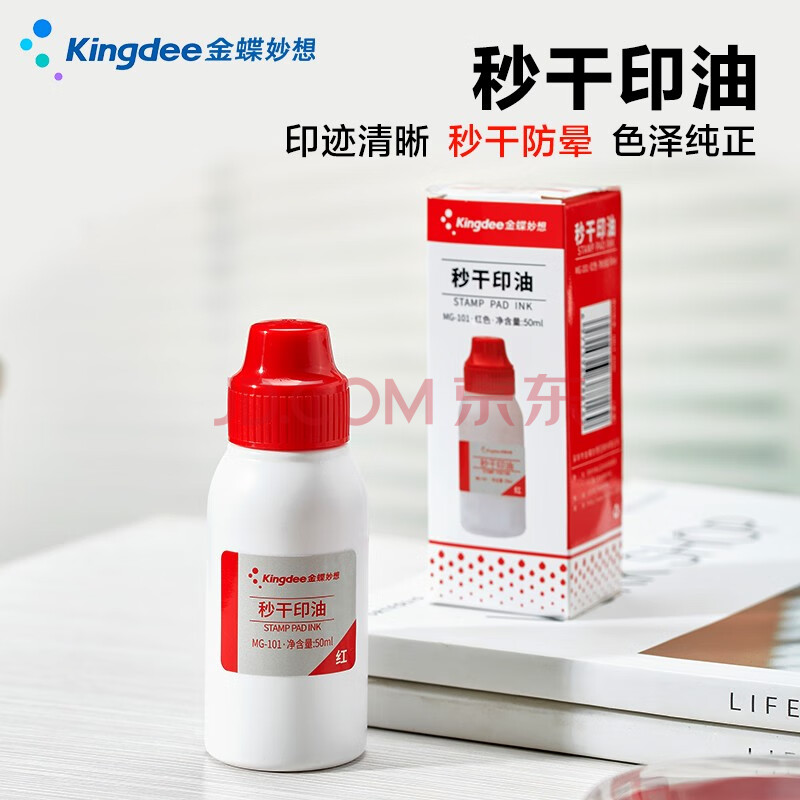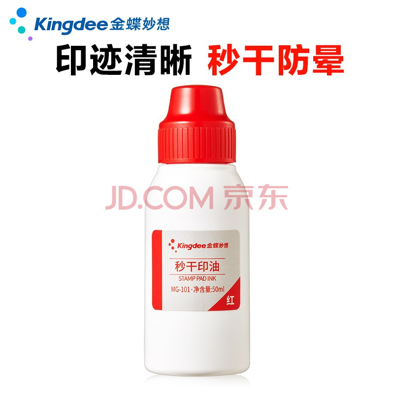 商品相册:Kingdee金蝶秒干印油 红色 财务专用耐光耐水印泥油 50ml第