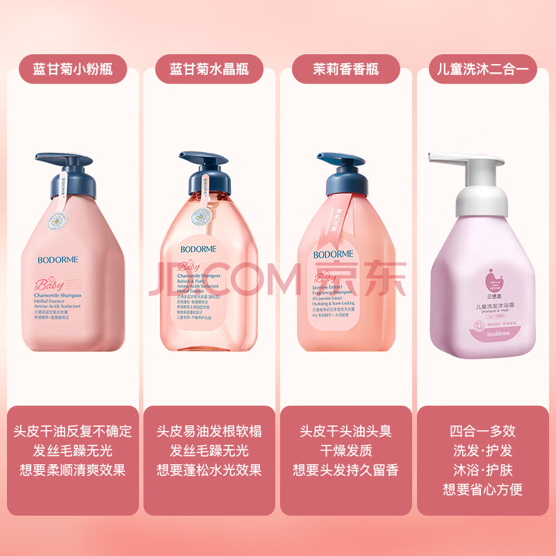 商品相册:贝德美蓝甘菊儿童洗发水3-4-6-12岁无硅油弱酸性洗发露男女孩用335ml*2第