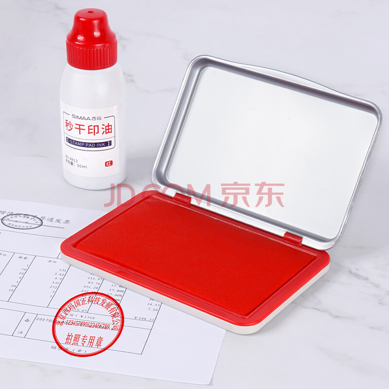商品相册:西玛(SIMAA)120*85mm 金属方形红色秒干印台 印台印泥财务办公用品 红色 19771第