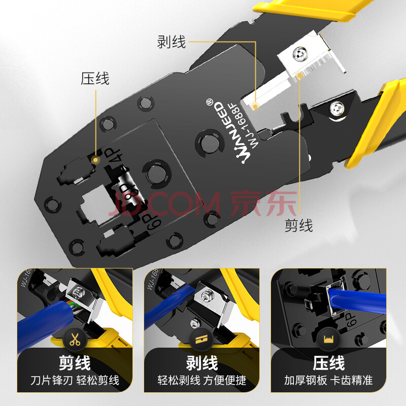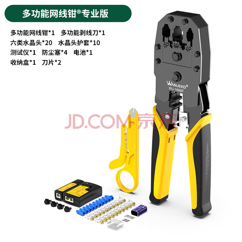 商品相册:万级网线钳 三用多功能剪剥压线钳套餐 8P6P4P超五类六类水晶头压接钳 电脑网络测试仪工具 WJ-1688F第