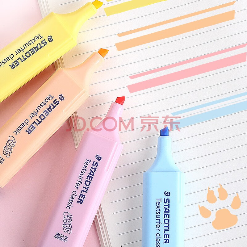 商品相册:施德楼(STAEDTLER)马卡龙4色荧光笔 1+5mm学生考试划重点办公标记号笔 儿童手抄报专用手账彩笔开学必备用品364CBK4第
