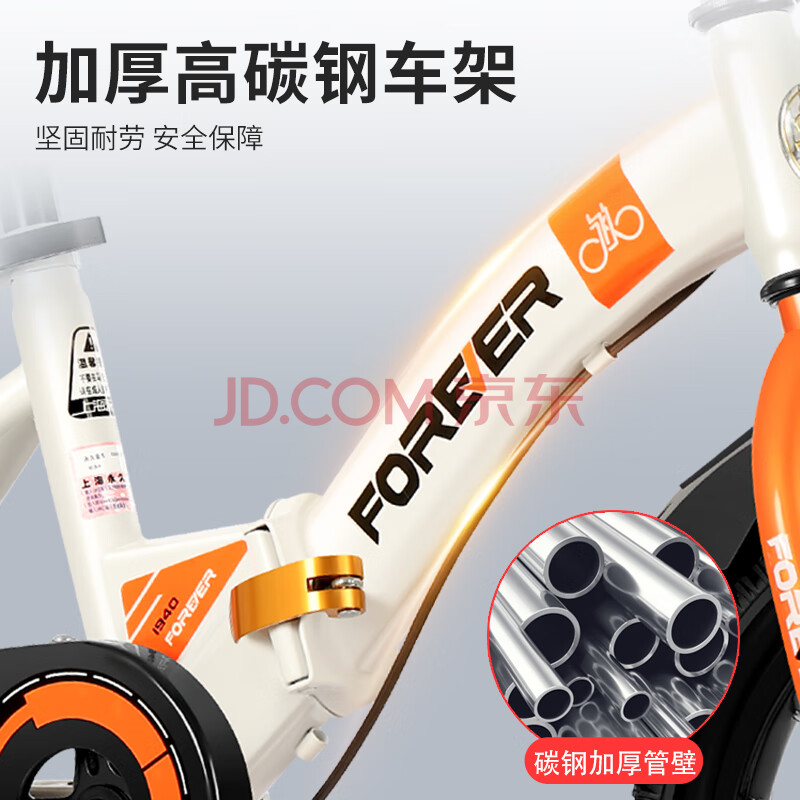 商品相册:永久(FOREVER)儿童自行车男女款小孩单车可折叠脚踏车4-6-8-10岁辅助轮14寸红色第