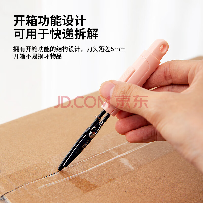商品相册:得力便携式特氟龙开箱剪刀 创意功能 秒变美工刀 粉色77761第