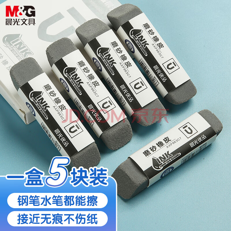 商品相册:晨光(M&G)文具钢笔橡皮5块装 精品全沙磨砂橡皮擦 优品中性笔圆珠笔水笔专用AXP963CB第