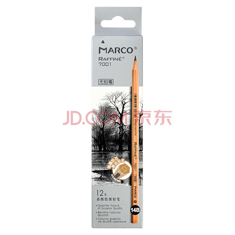 商品相册:马可(MARCO)14B素描铅笔12支 原木专业美术六角杆手绘速写绘图笔纸盒装学生初学者考试画画专用7001-14B 速写 马克笔绘画第