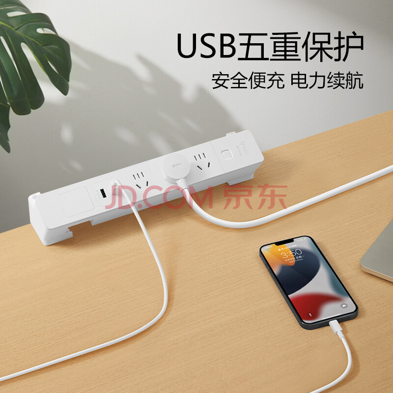 商品相册:公牛(BULL)免开孔 桌夹式嵌入式插座/插线板/插排/排插/接线板/拖线板 多功能桌面插座 3位+2USB全长1.8米第