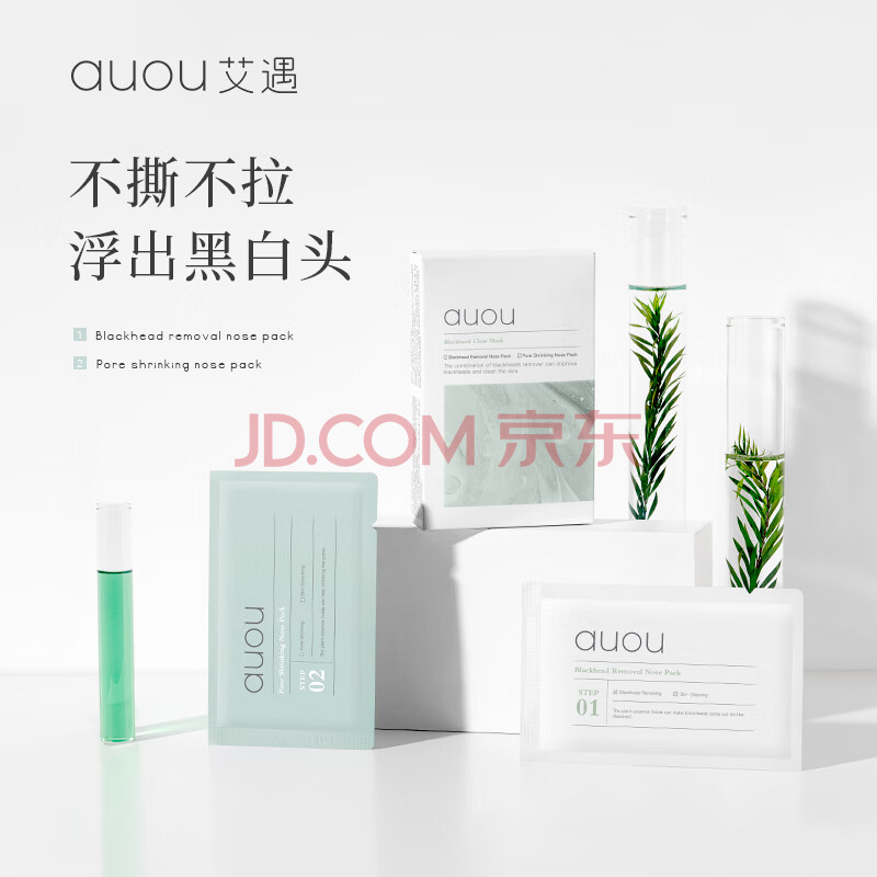 商品相册:艾遇(AUOU)鼻贴去黑头套装清洁控油不撕拉温和净肤1盒装 礼物送女友第1张/共6