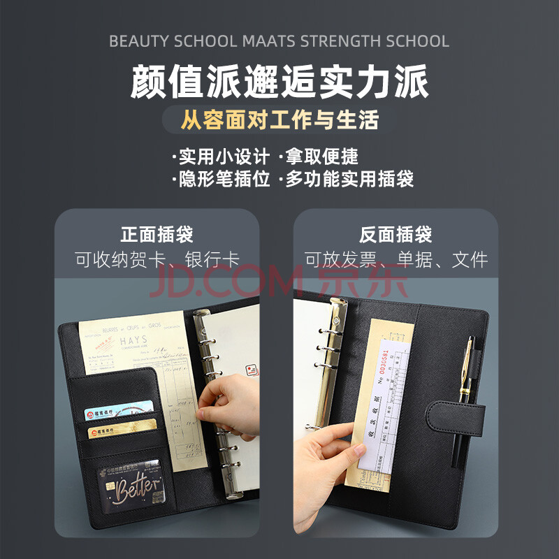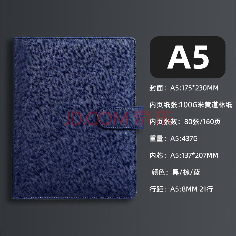 商品相册:嘉然恒 活页本A5商务办公笔记本本子高颜值25K简约加厚活页记事本可拆卸替换活页内芯会议记录本可定制深蓝色第