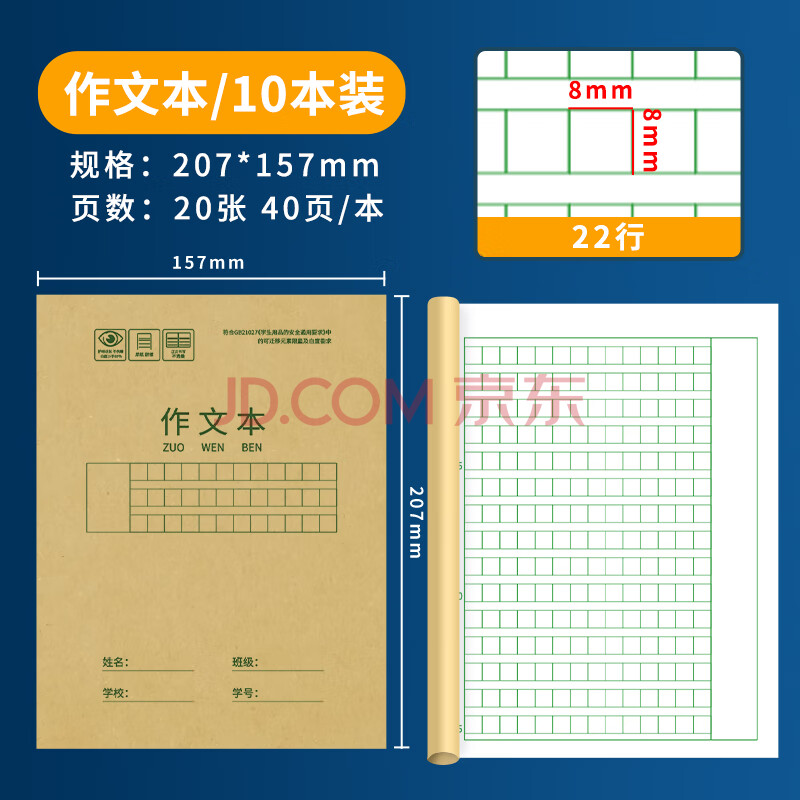 商品相册:西玛(SIMAA)22k学生作文本练习本作业本20页/本 120g牛皮封面 10本/包 XQ22K11第
