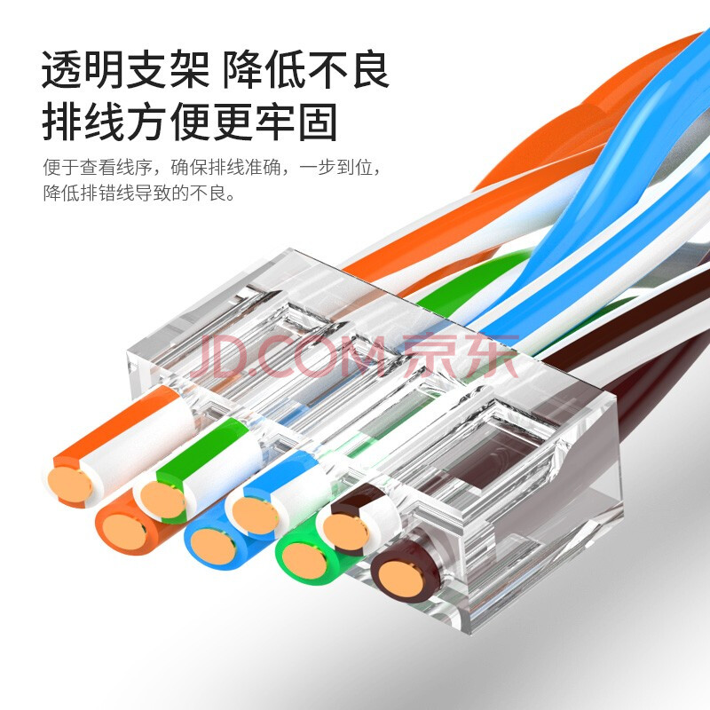 商品相册:万级超六类屏蔽水晶头1.45mm超大线孔两件分体式 CAT.6a类镀金水晶头保护套 6个装WJ-15263第