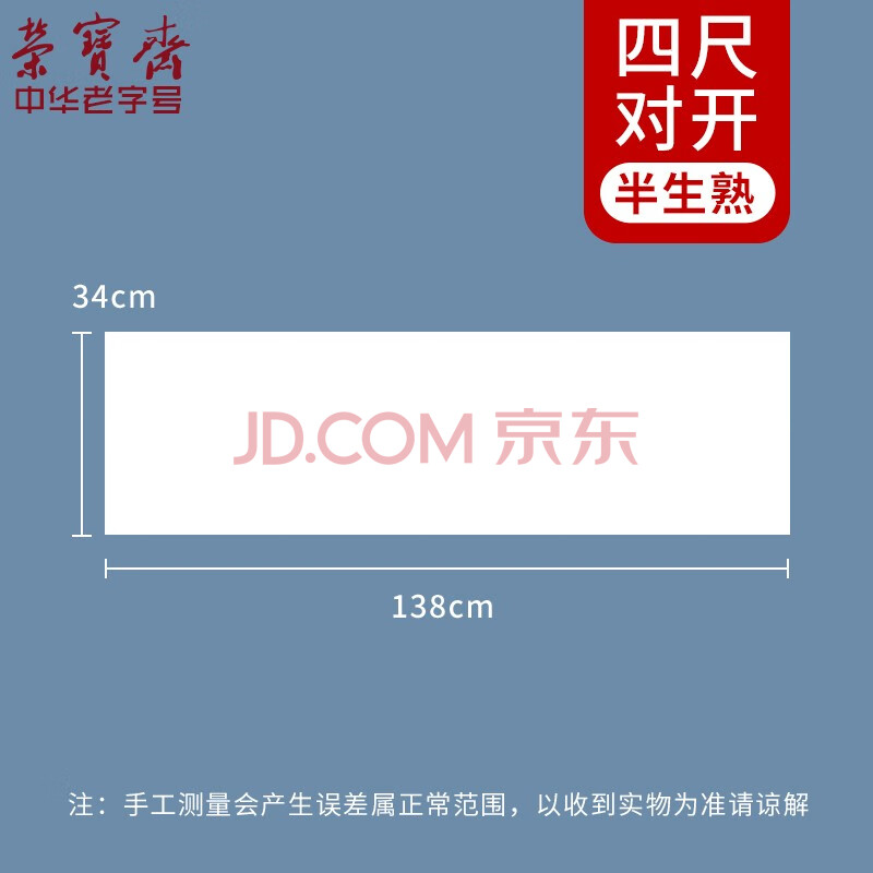 商品相册:荣宝斋 书画纸宣纸 日星宣纸半生熟书法国画专用毛笔初学练习创作四尺对单开学生 半生熟-四尺对开第