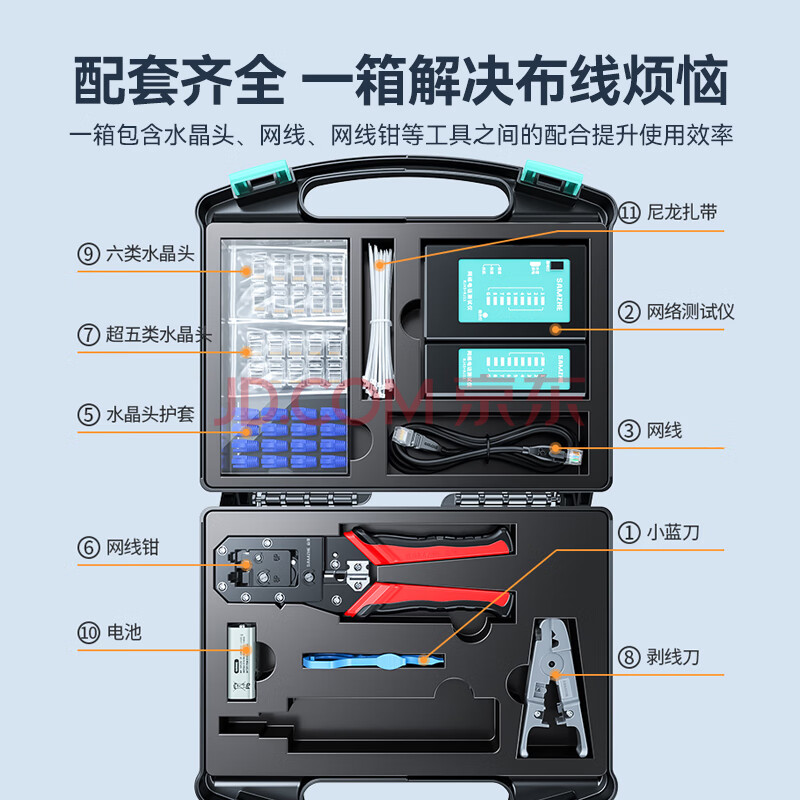 商品相册:山泽网络工具箱套装工具包 多功能网线钳水晶头测线仪剥线刀扎带护套压线钳工具箱 XP-120第