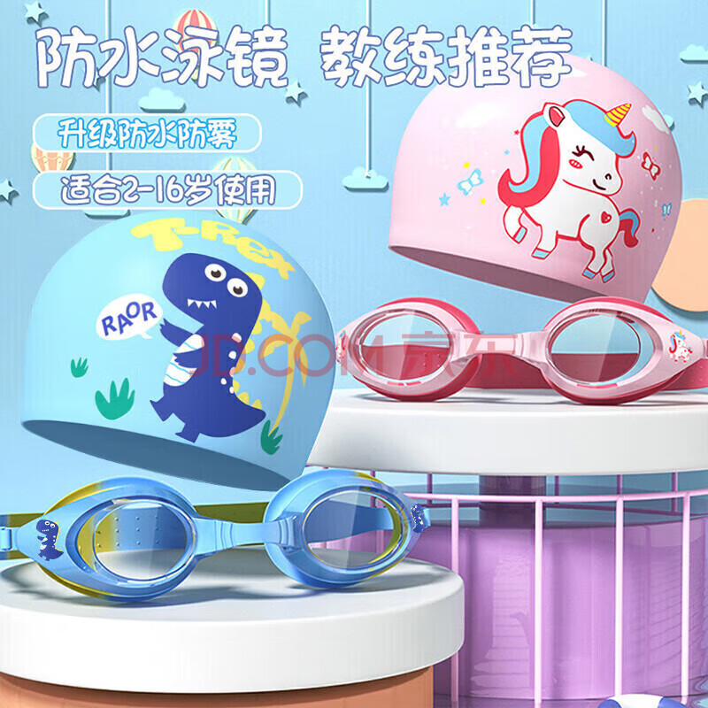 商品相册:佑游儿童款泳镜防水防雾高清游泳馆洗澡游泳镜三件套61311 蓝色恐龙第