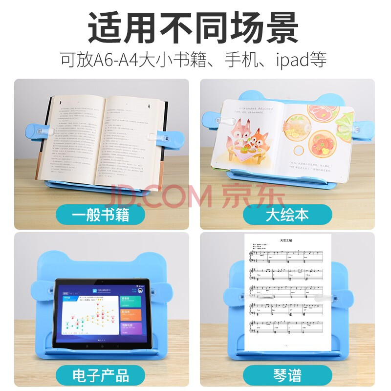 商品相册:协同 六一儿童节礼物看书支架阅读架夹书器桌上可移动小学生用书靠读书架书立架可伸缩便携单手翻架 北欧粉第