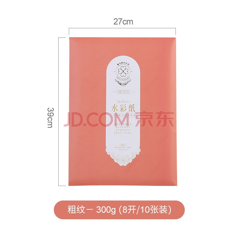 商品相册:鲁本斯(PaulRubens)四叶草水彩纸加厚8K粗纹300g全棉浆素描纸磷光图画本学生美术画纸10张/包0111107第