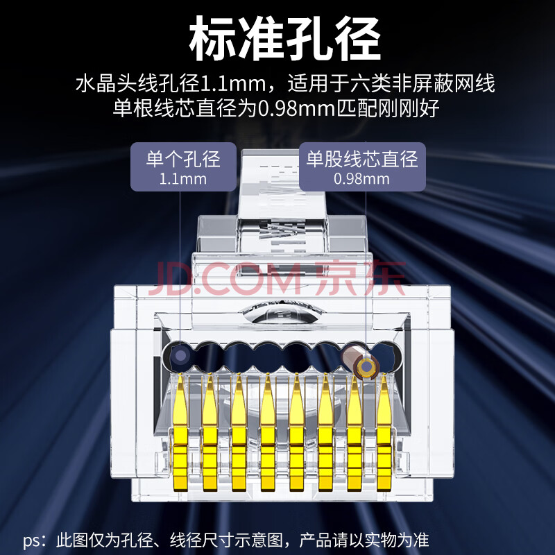 商品相册:HAILE海乐六类穿孔式水晶头镀金网线通孔接头100个装HT-510A第