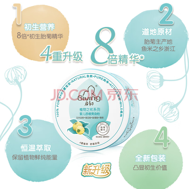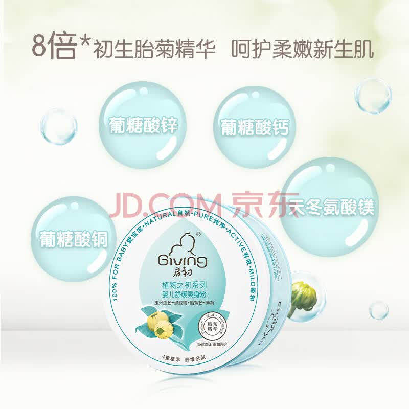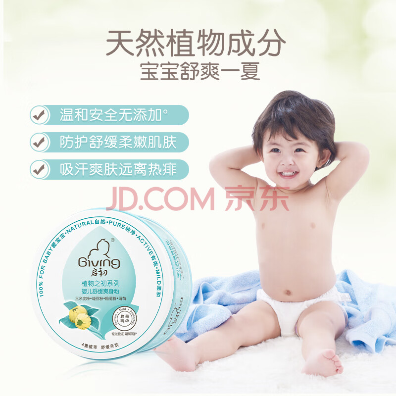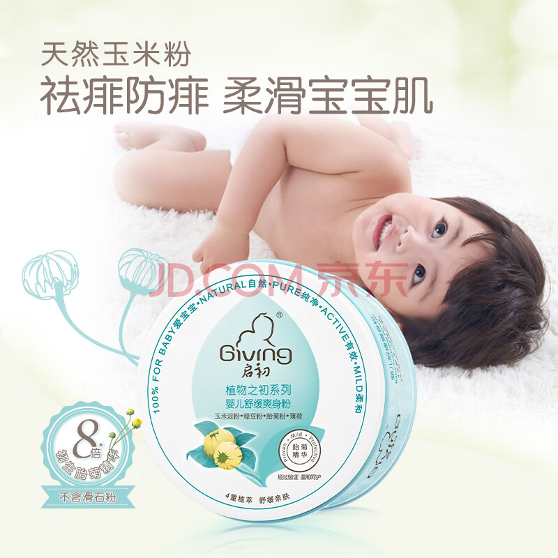 商品相册:启初婴儿舒痱粉 痱子粉 爽身粉 清爽儿童舒痱粉不含滑石粉带粉扑 130g第