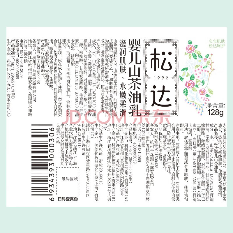 商品相册:松达儿童面霜婴儿山茶油润肤乳宝宝保湿乳液滋润128g+68g第1张/共8