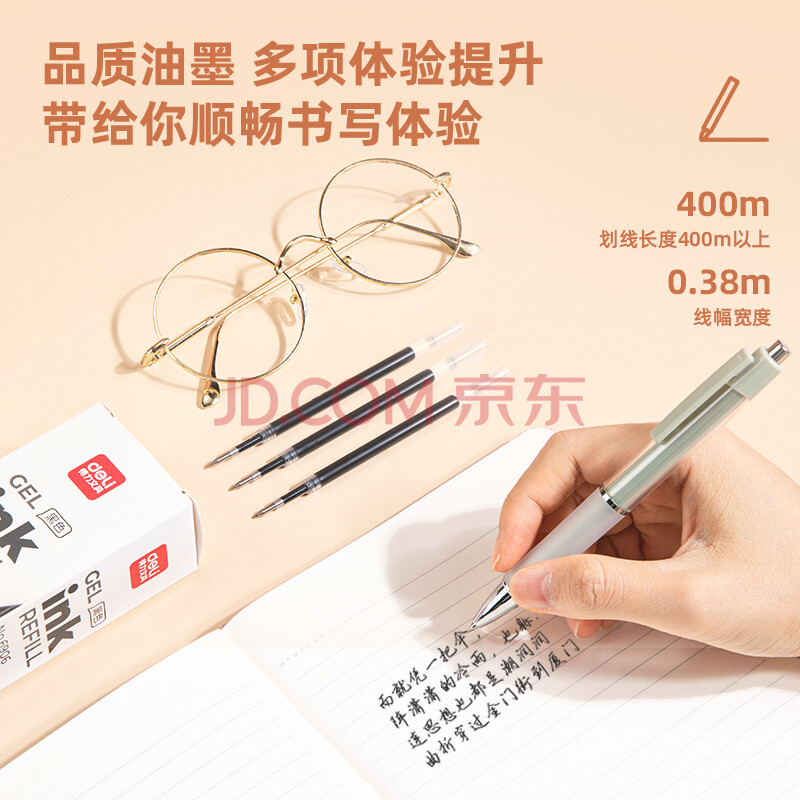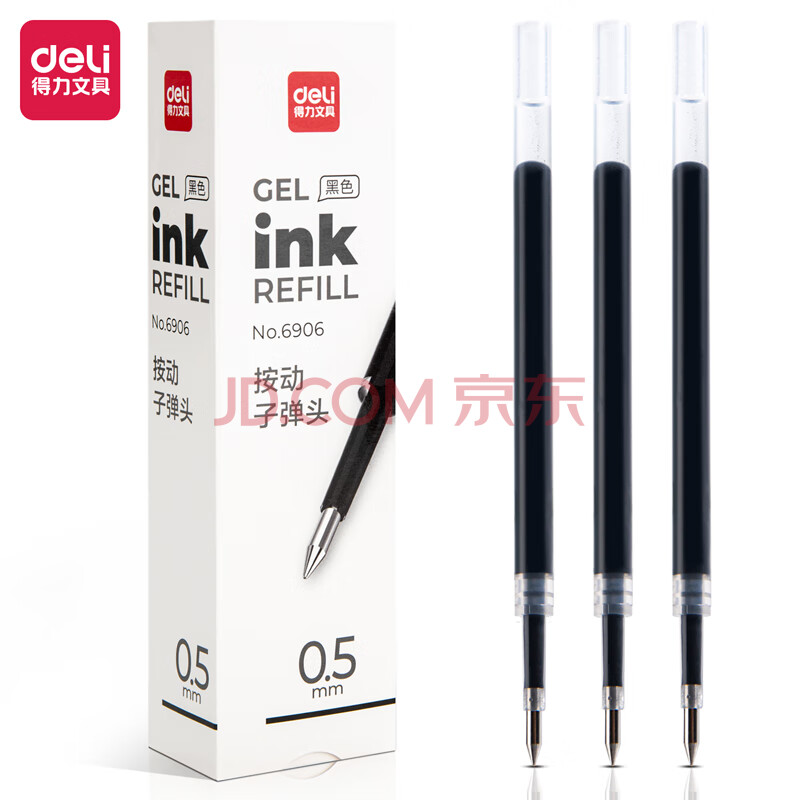 商品相册:得力(deli)按动中性笔芯6906黑色0.5mm水性笔签字笔替芯子弹头碳素水笔芯20支装第