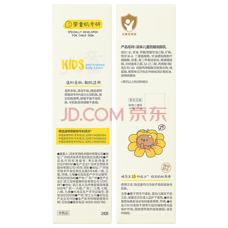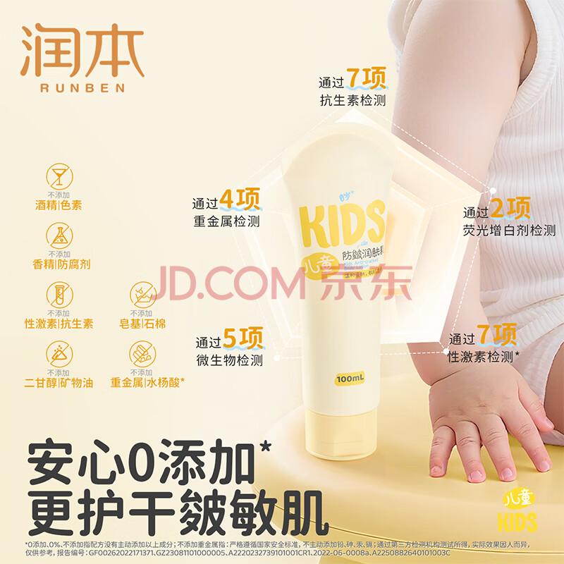 商品相册:润本儿童身体乳宝宝润肤乳婴幼儿面霜防皴保湿护肤四季滋润款100ml第