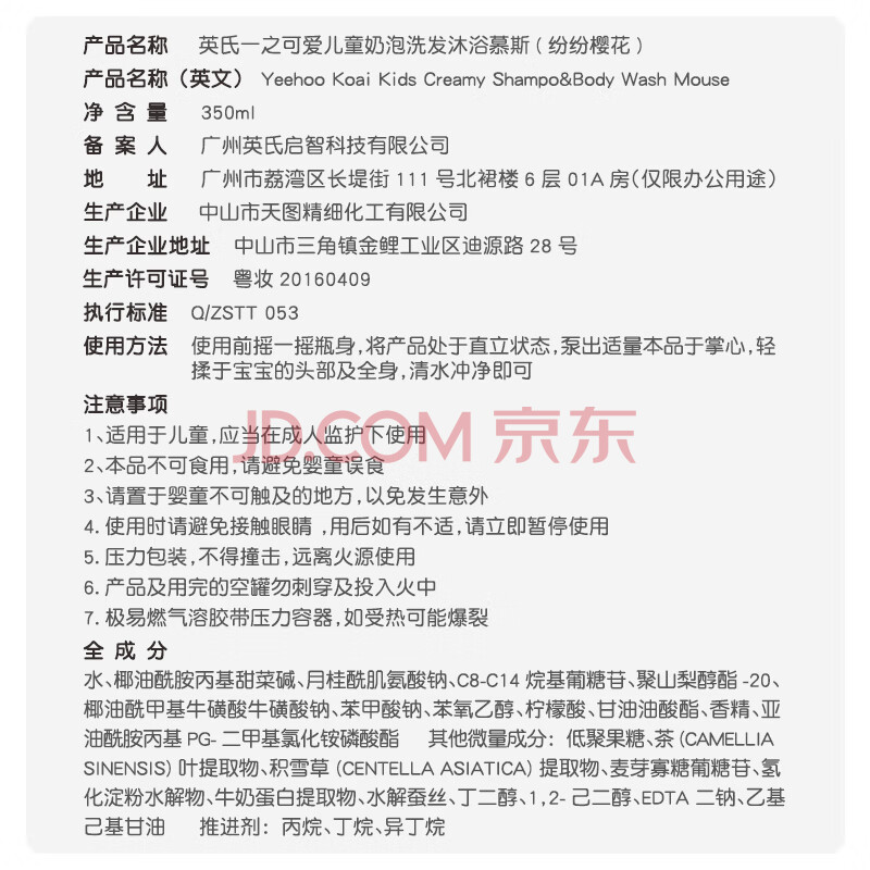 商品相册:英氏儿童洗发水沐浴露儿童洗护二合一宝宝洗发沐浴 小奶泡樱花味350ml第