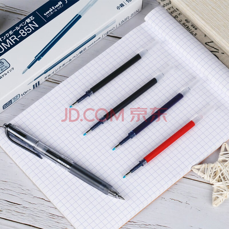 商品相册:uni三菱 uni-ball UMR-85N按动笔芯0.5mm中性笔蓝色替芯 适用签字笔UMN-155 105 152 207等系列 10支第