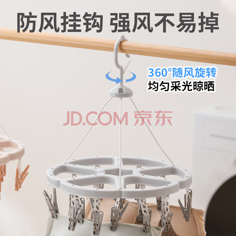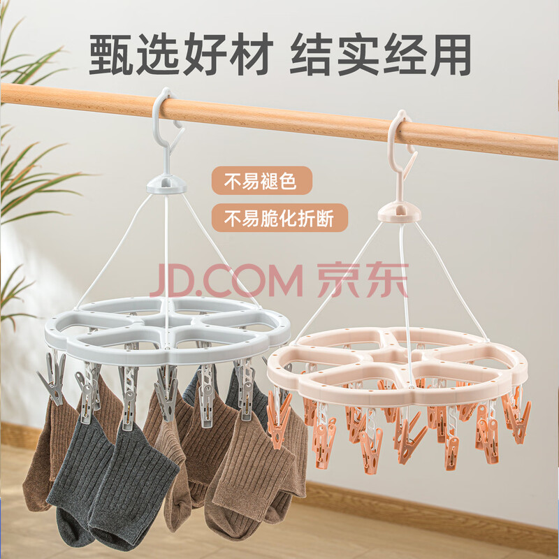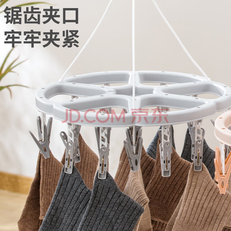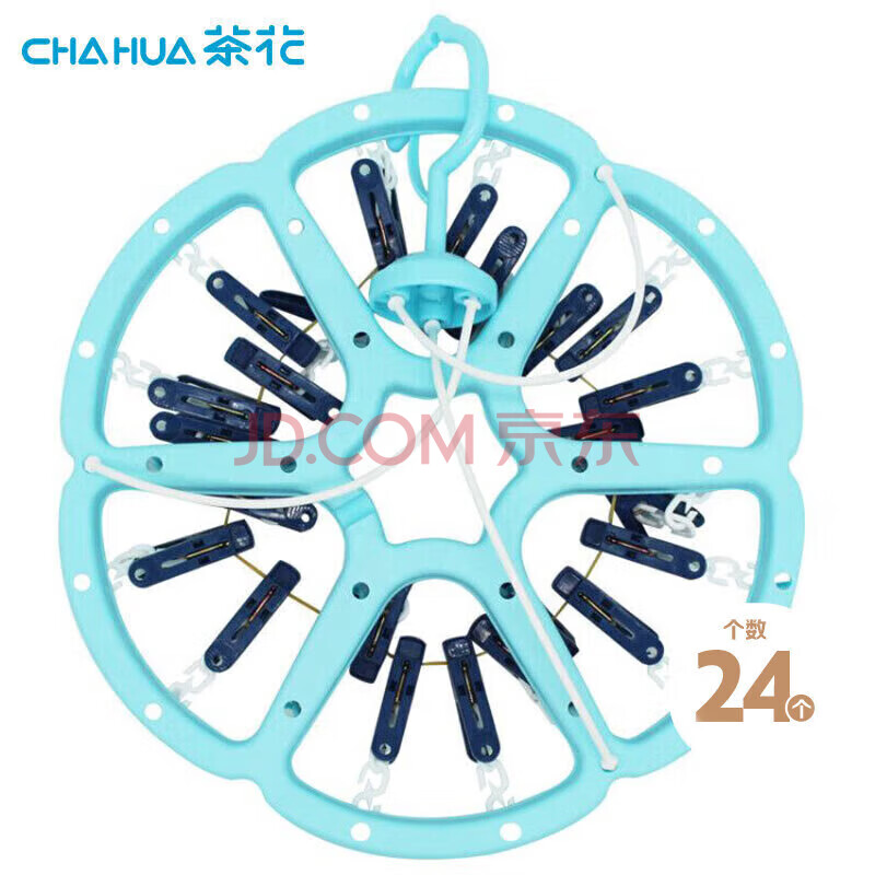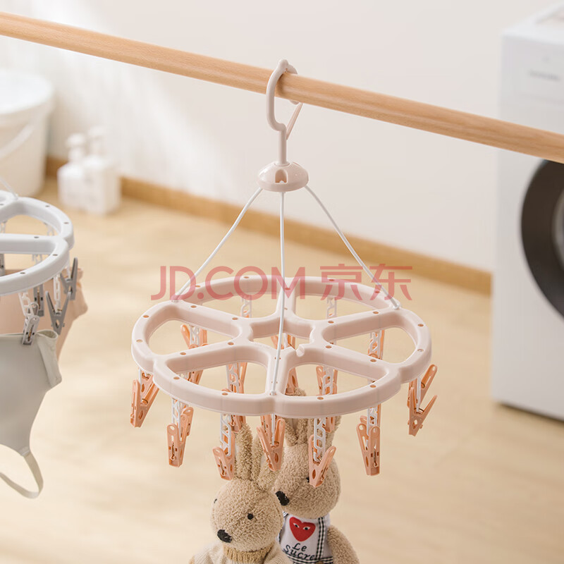 商品相册:茶花衣架子晾衣夹圆形晾衣架 晒袜子架内衣架(24夹子)挂架 1只装第1张/共8