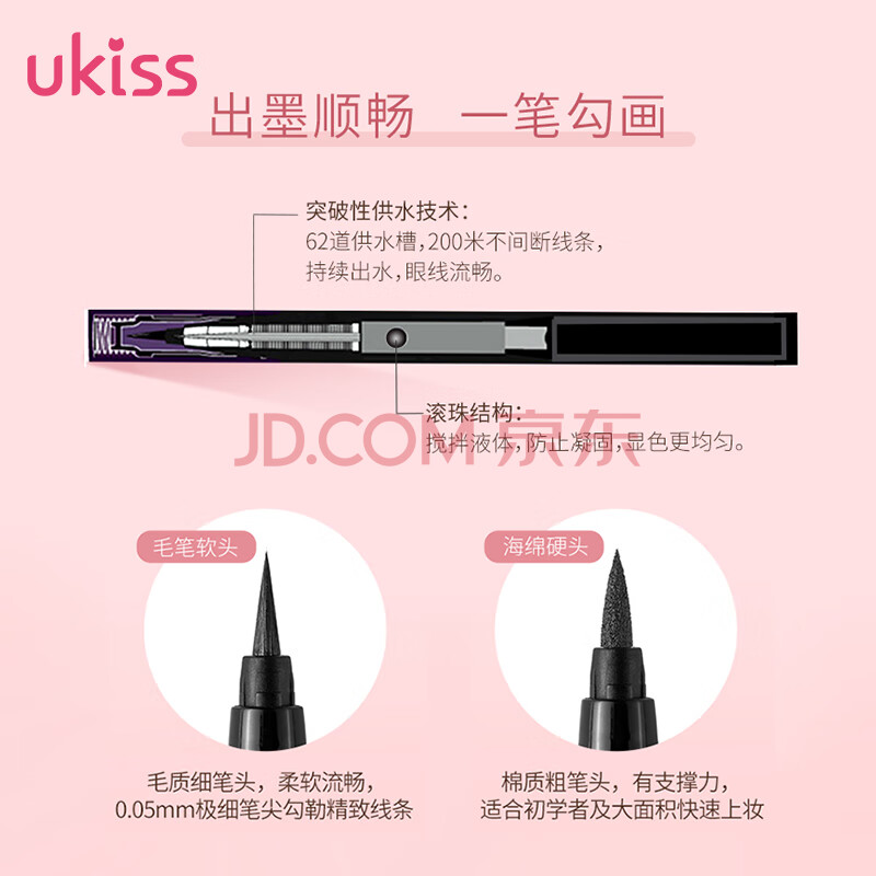 商品相册:悠珂思(ukiss)眼线液笔01#黑色软头0.6g 极细顺滑显色防水防汗不晕染新年礼物第