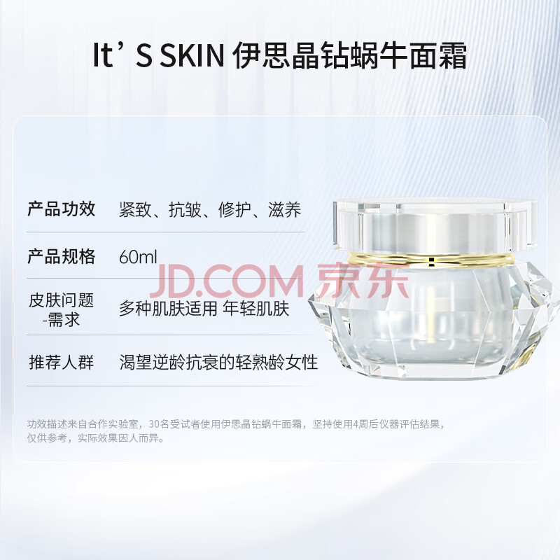 商品相册:伊思(It’s skin)晶钻蜗牛面霜60ml 清爽抗皱滋润紧致焕亮肤色油皮挚爱生日礼物女第