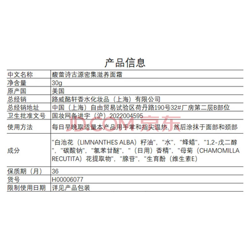 商品相册:Fresh馥蕾诗古源密集滋养面霜30g护肤品 生日礼物送女友送男友送男友第