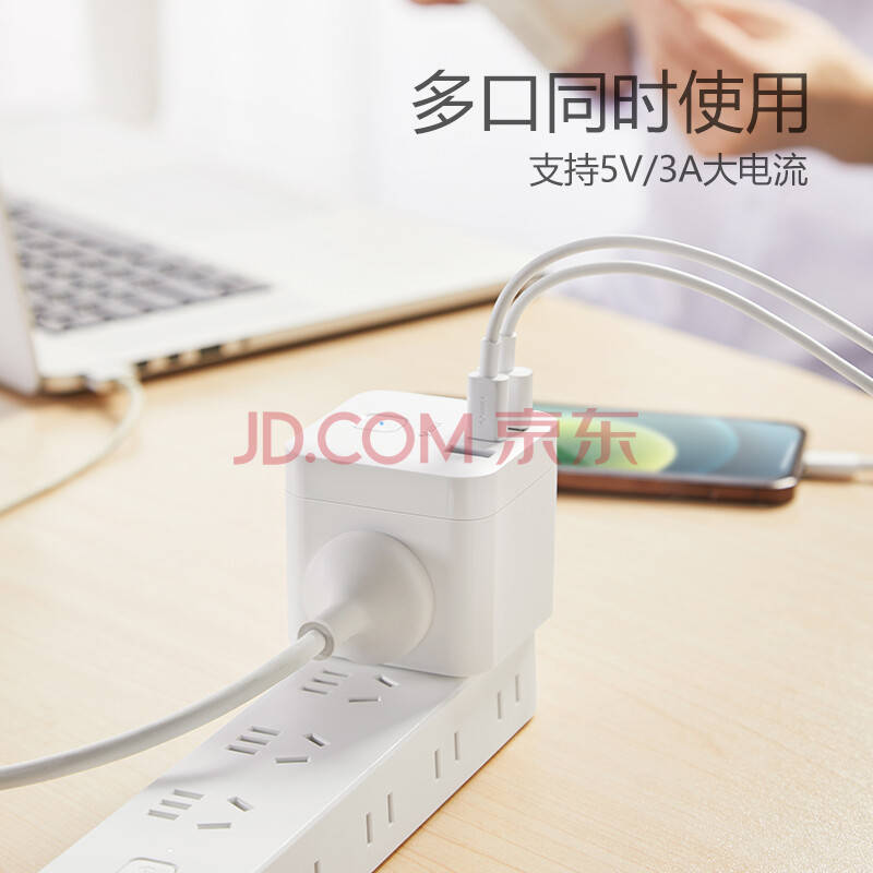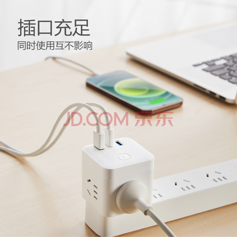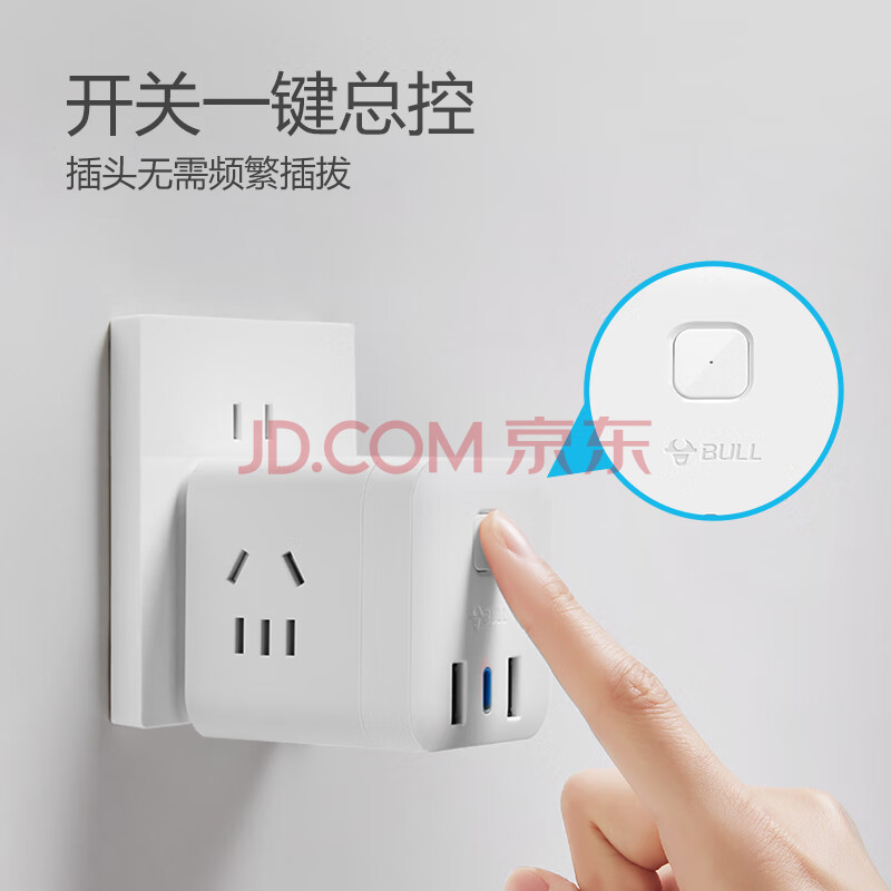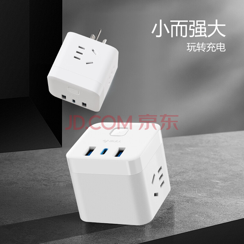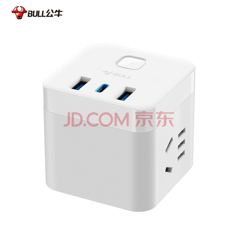 商品相册:公牛(BULL)20W PD苹果快充魔方插座/插线板/插排/接线板 Type-c+USB+3插孔 无线 白色 GNV-UU2203W总控开关第