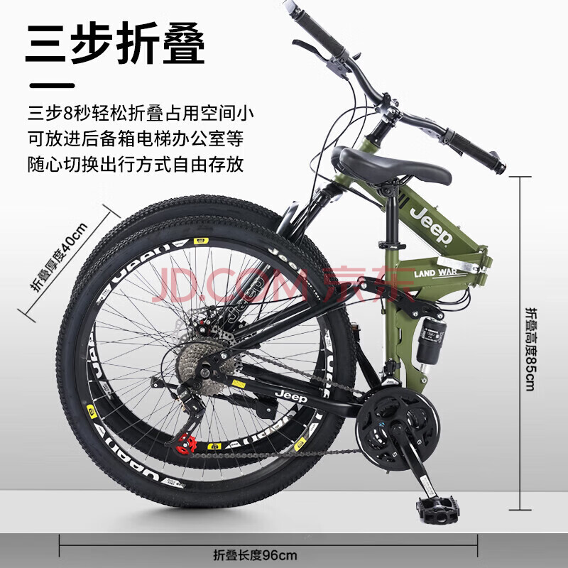 商品相册:Jeep吉普自行车折叠山地男女学生24寸24速双减震公路单车战神-活力橙第
