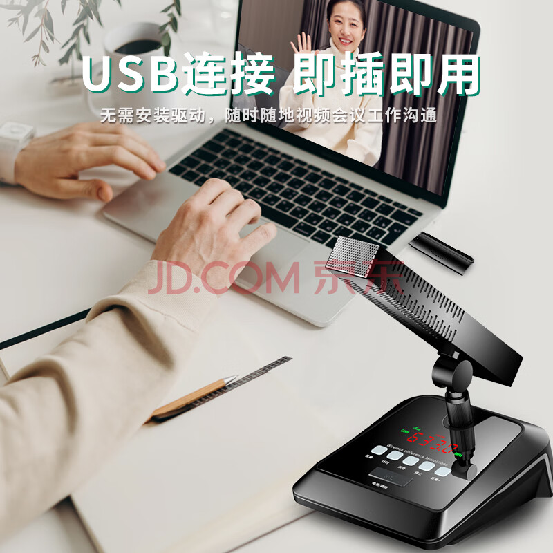 商品相册:索爱(soaiy)SA-H4B一拖二款电脑USB无线话筒麦克风台式笔记本KTV视频会议网络教学网课话筒 U段升级款第