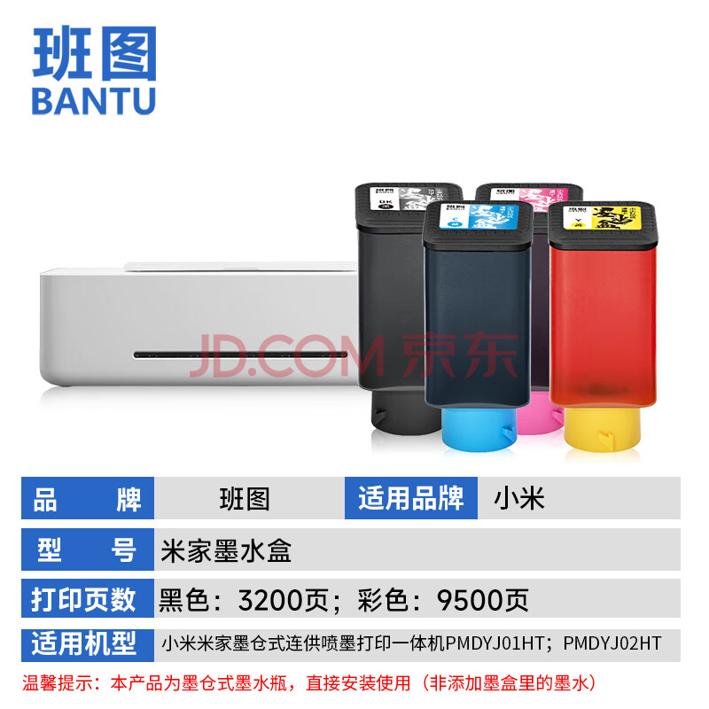 商品相册:班图适用小米(MI)米家墨仓式连供喷墨打印一体机墨水盒PMDYJ02HT彩色打印机墨盒黑色2支第