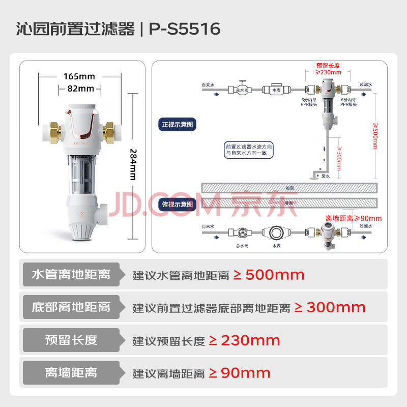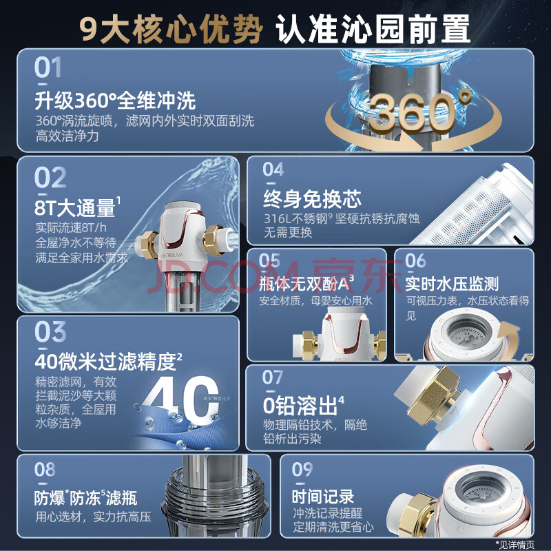 商品相册:沁园前置过滤器家用净水器8T大通量 40微米手动正反冲洗过滤器 压力表监控全屋净水器P-S5516第