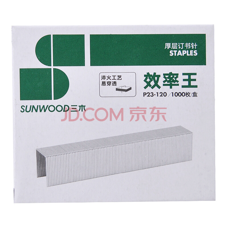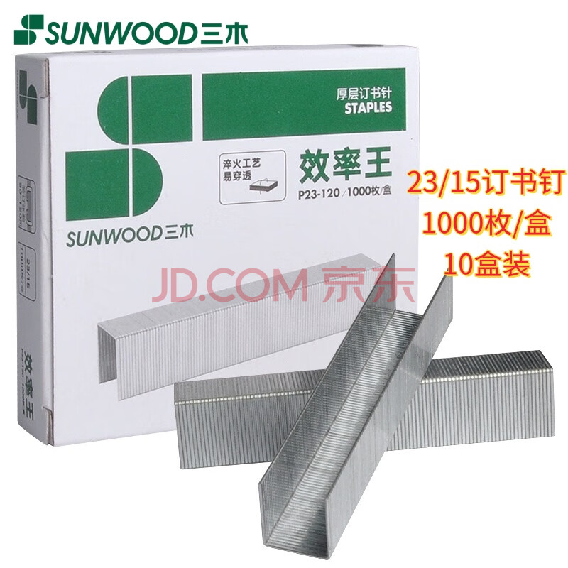 商品相册:三木(SUNWOOD)效率王系列 23/15订书钉/订书针 1000枚/盒 10盒装 P23-120第1张/共8