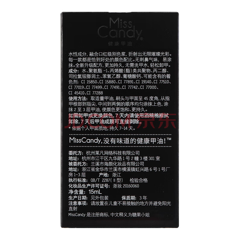 商品相册:Miss Candy显白健康15ml指甲油免烤快干持久可撕拉半透粉色美甲 蜜桃粉MA65第