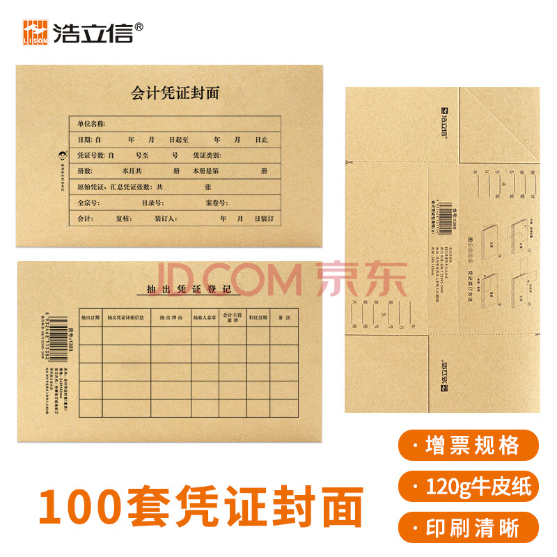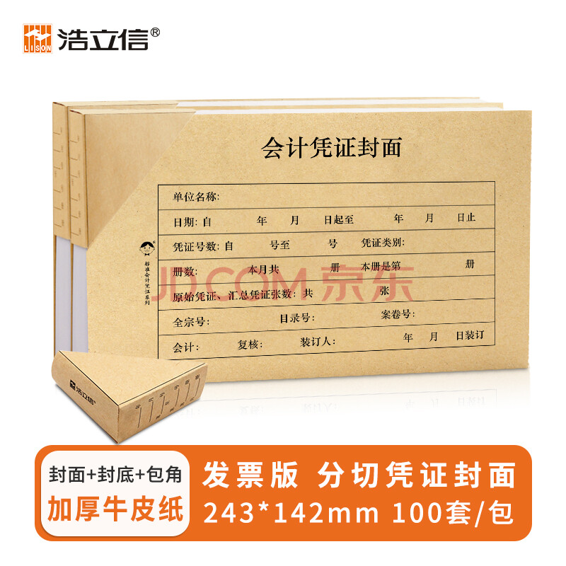 商品相册:浩立信(LISON)发票版凭证封面 (封面100套+包角100个) 财务装订会计凭证封皮 243*142mm 精牛1303财会用品第