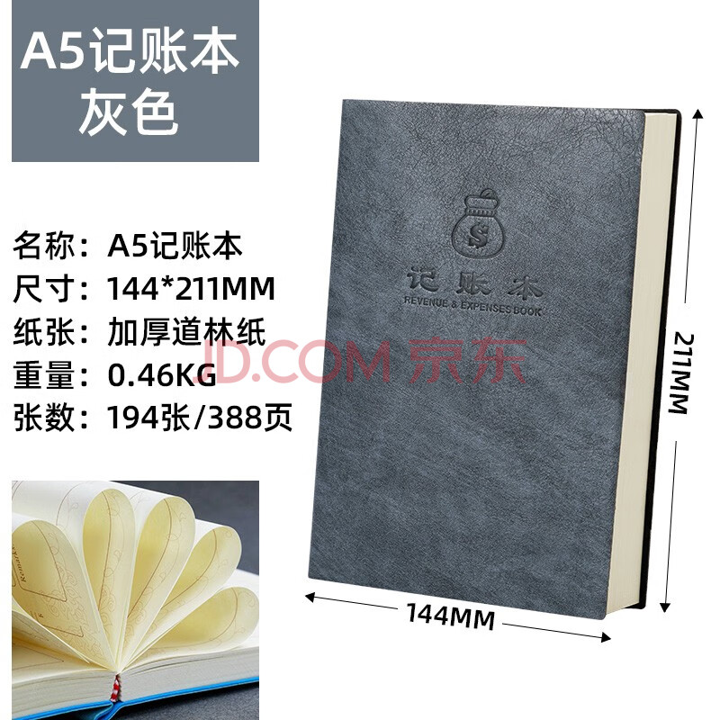 商品相册:嘉然恒 记账本家庭流水理财a5超加厚笔记本本子随身生活收入支出明细家用店铺商用便捷多功能记账簿-灰色第