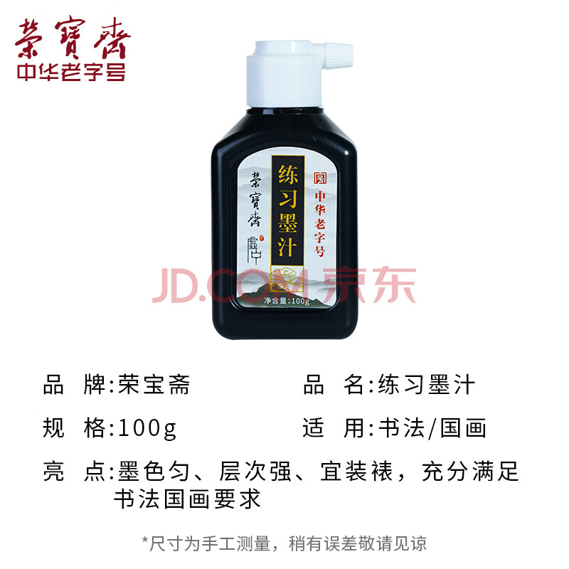 商品相册:荣宝斋 墨汁 书法国画专用作品墨液 初学者学生文房四宝高档创作 练习墨汁100g热门商品第