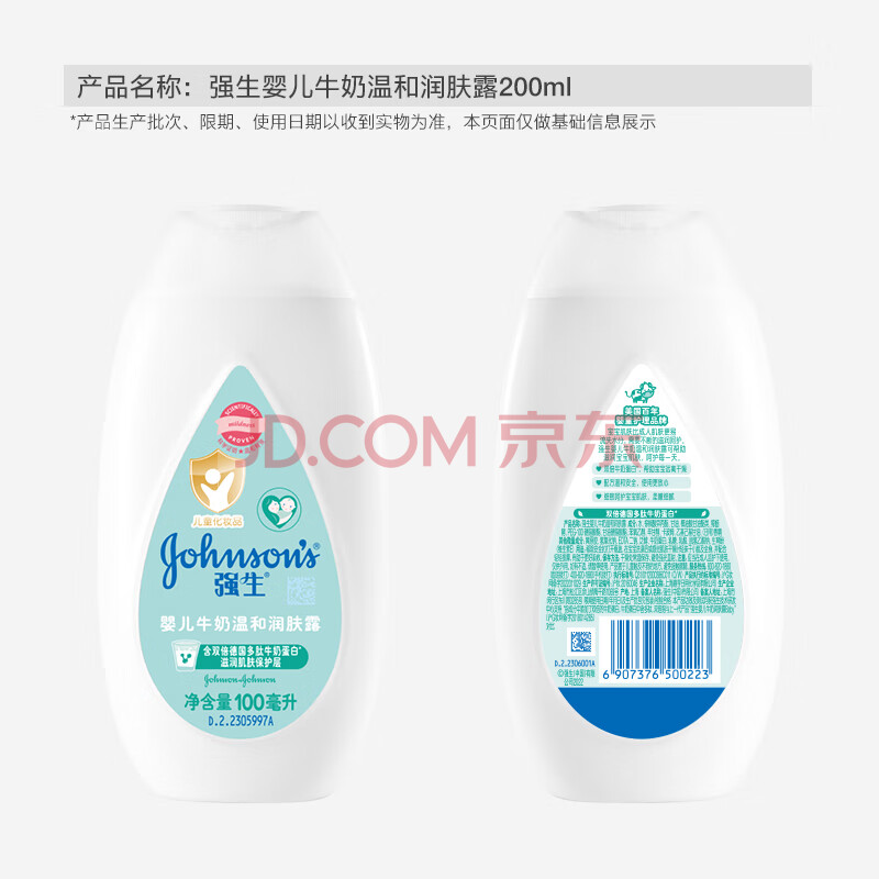 商品相册:强生(Johnson)婴儿牛奶身体乳润肤露200ml 宝宝儿童青少年补水保湿面霜护手霜第