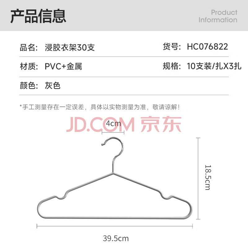 商品相册:美丽雅 衣架30支 防滑浸胶晾衣架干湿两用无痕晒衣架金属挂撑衣架子灰色第
